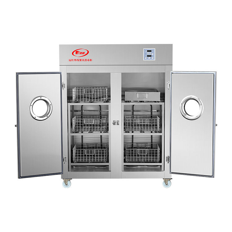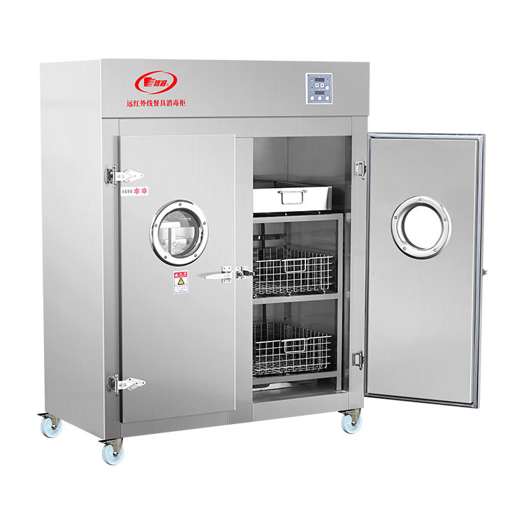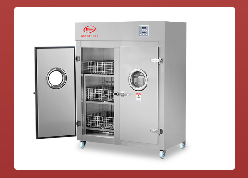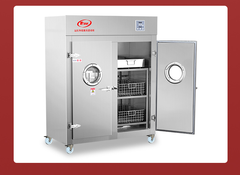 廠家新款火太陽遠(yuǎn)紅外線不銹鋼餐具雙門消毒柜適用學(xué)校單位食堂