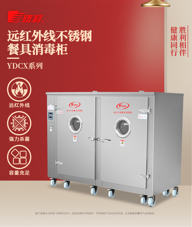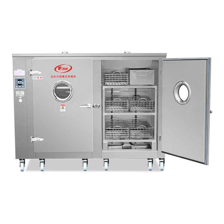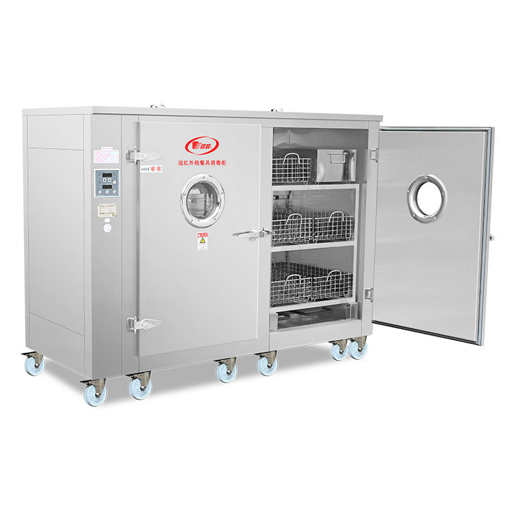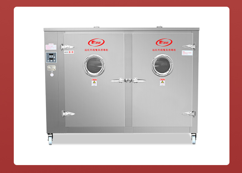 廠家新款火太陽遠紅外線不銹鋼餐具雙門消毒柜適用學(xué)校單位食堂